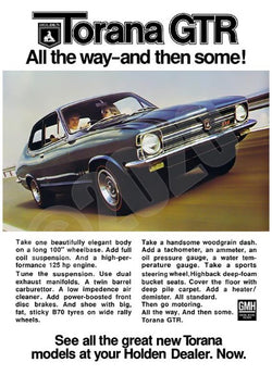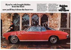 1969 Holden HT GTS Monaro restored car advert by Unique Autoart. This classic Holden advert is a digitally restored reproduction of an original advertising campaign used by Holden during the late '60s to help promote the now-classic HT Monaro. This great piece of Holden history will make a fantastic gift for any Holden car enthusiast and comes printed on 100% cotton archival paper using the best UltraChrome ink on the market. These prints will look great when they're matted and framed. Please be aware that the measurements on the adverts may vary depending on the original size used by the manufacturer at that time. A 3mm - 5mm bleed is left around the print for, matting and framing purposes.