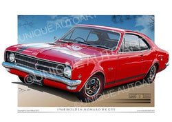 Unique Autoart is pleased to present this beautiful 1969 Holden HT GTS Monaro car print, a digital car drawing created in 2008 by Australian automotive artist Dion Mifsud. Dion's art comes printed on 330gsm museum grade 100% cotton that is acid, lignin and chlorine free that is guaranteed to last up to 100 years. Due to the car's rarity, our classic car drawings have become quite popular among many Australian muscle car enthusiasts. The HT Monaro designs make excellent birthday gifts for those wanting some Australian automotive nostalgia hung up on their walls.
